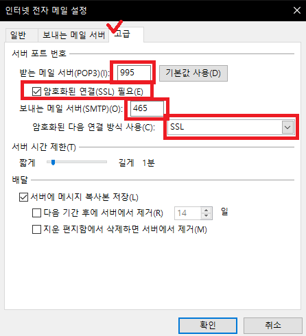 | 첫번째 _ 사용하려는 메일이 IMAP/POP3 설정이 되어있는지 확인하기! |
