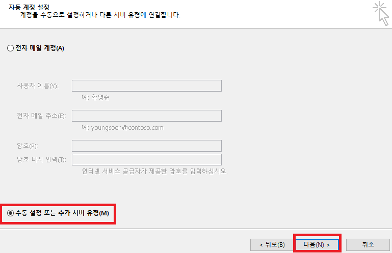 | 두번째 _ 아웃룩 사용자 생성! |