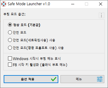 만약 윈도우7처럼 F8키로 안전모드를 진입하게 만들고싶으시다면 F8시작키 활성화를 체크하시면 됩니다.