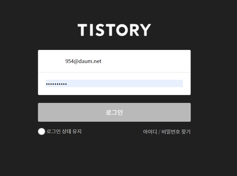 언제 부터 티스토리에서 로그인을 누르려면 회색버튼으로 변해서 로그인 안되더라구요