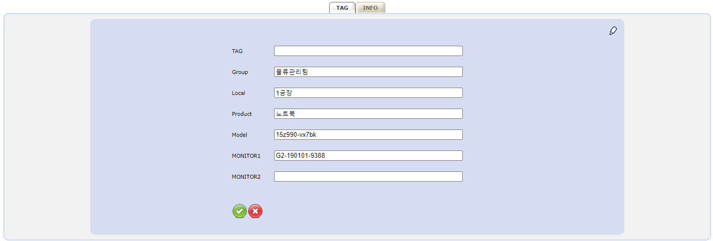 현재는 사용자, 부서, 공장, 분류, 모델명, 사용중인 모니터를 실시간으로 변경하면서