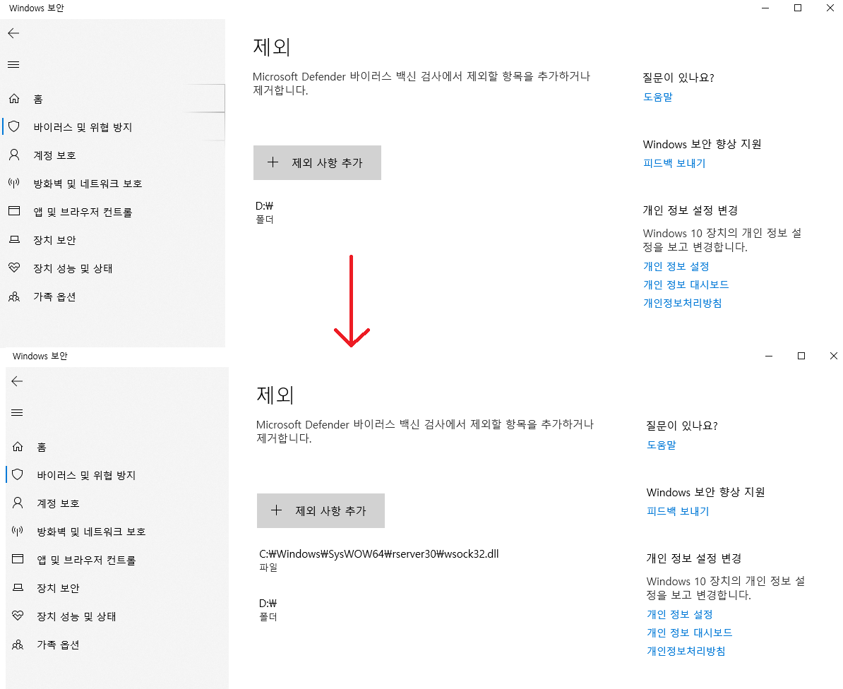 백신을 따로 사용하지않고 윈도우 디펜더를 써서 PC들을 관리하다보니 파일들을 삭제해버려서 정상적인 관리가