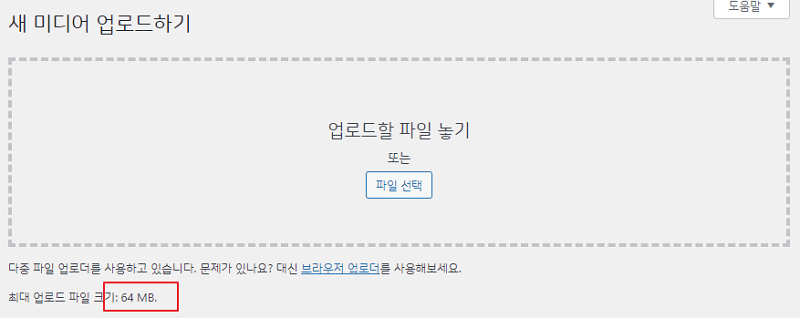 원래 호스팅 업체를 쓰면 저 파일만 변경하면 용량이 변경 되었는데… 나스에선 되지 않았음. php.ini 건들여 줘야 하는…