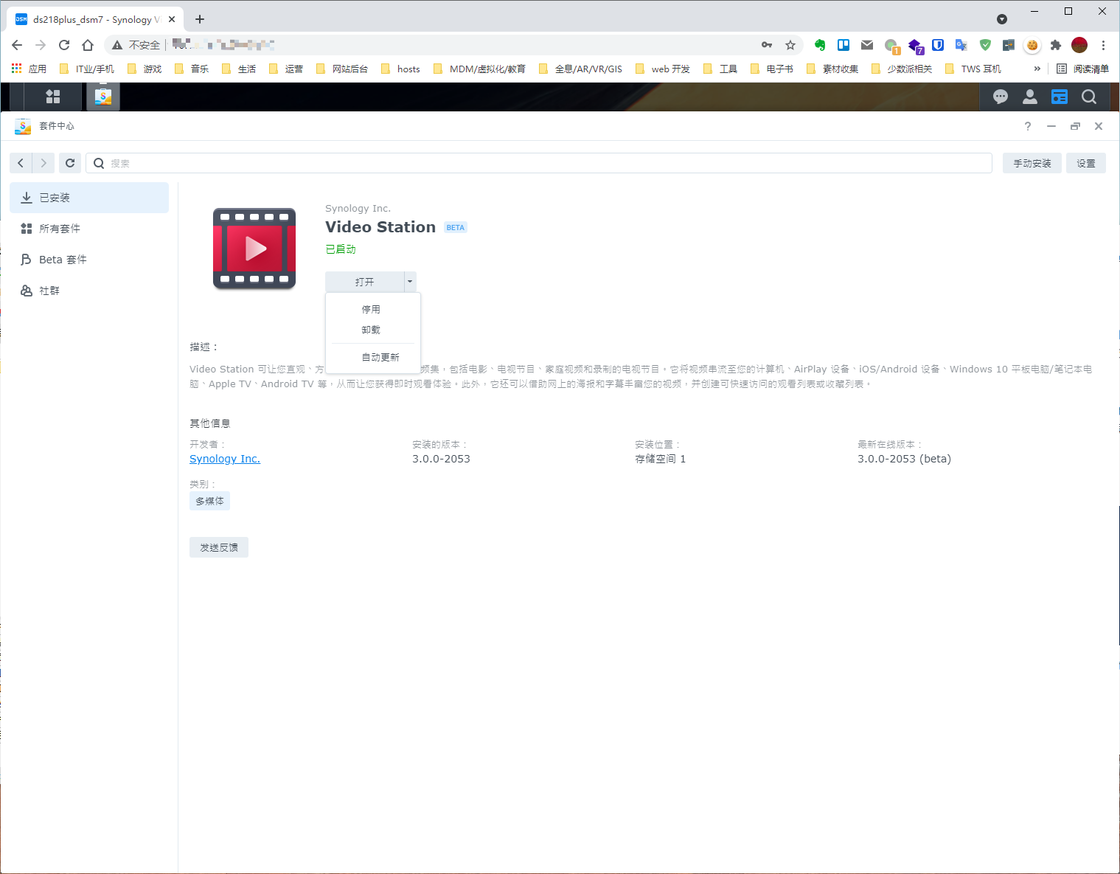 명령 입력이 완료된 후 현재 변경 사항을 적용하려면 Video Station을 다시 시작해야 합니다. Synology에 로그인하고 패키지 센터를 열고 Video Station 패키지 페이지를 찾아 "비활성화"를 선택한 다음 작업이 완료되었습니다.